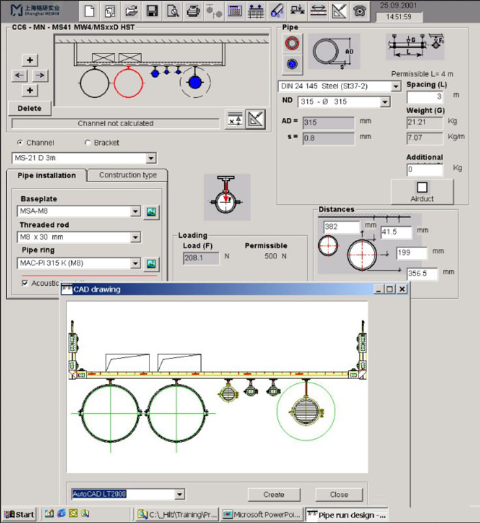 進行所承管線荷載及支吊架的計算及策劃,主要是通過專用管道支吊架軟件設計及校核,出具受力計算書和CAD圖紙。