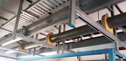 成品管道支吊架,是將給排水、空調通風、消防、強電、弱電等安裝工程中的各專業的支吊架綜合在一起,通過標準化構件組合形成統一的管道支吊架系統。