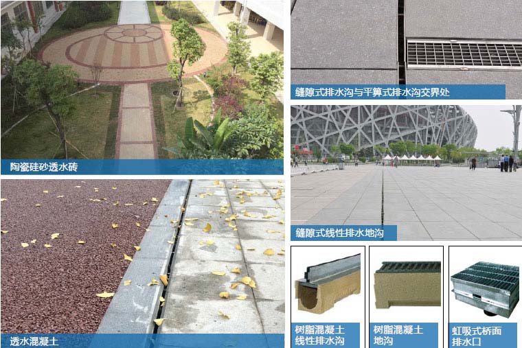 利用透水地面、 線性排水溝系統(tǒng)、 集水滲透雨水井、 環(huán)保型雨水口等地面設(shè)施收集雨水, 通過棄流、截污、 滲透、 土壤過濾等方式凈化雨水,通過地面匯集或管道系統(tǒng)排入下沉綠地或集中雨水收集池。
